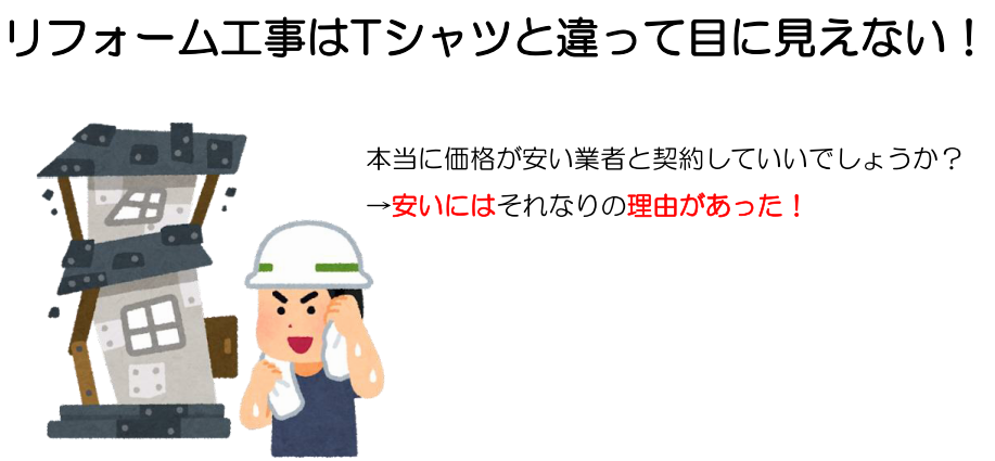 リフォーム工事を初めてやる方は非常に不安だと思います。