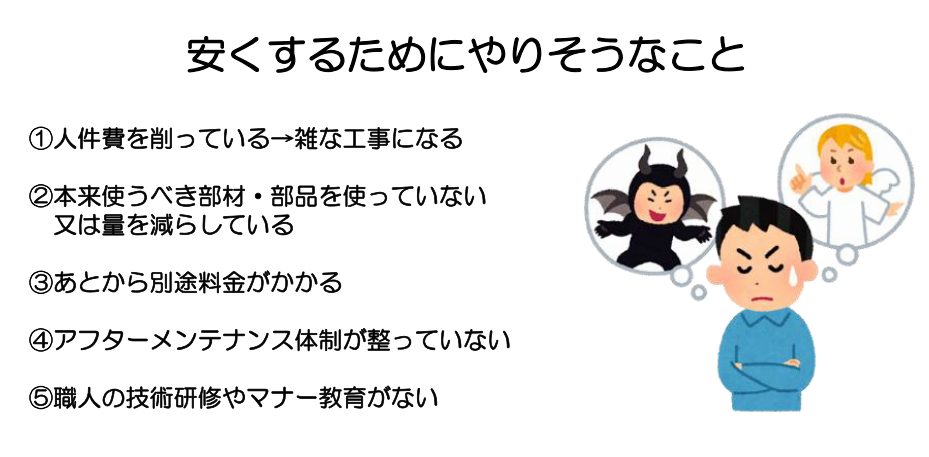 ただ、安さだけで工事を決めてしまうと後々後悔するケースが少なくありません。