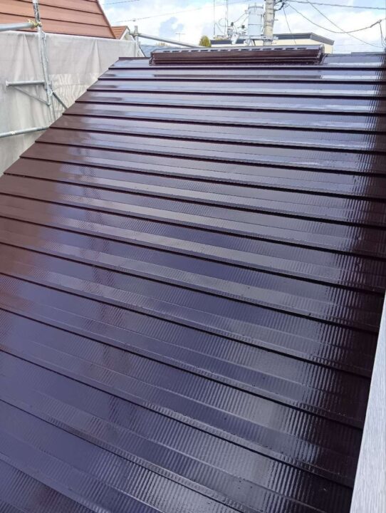 しっかりとした屋根洗浄・ケレン作業を行い、下塗り塗装で下地処理を行った上で中塗り、上塗り塗装を行いました。